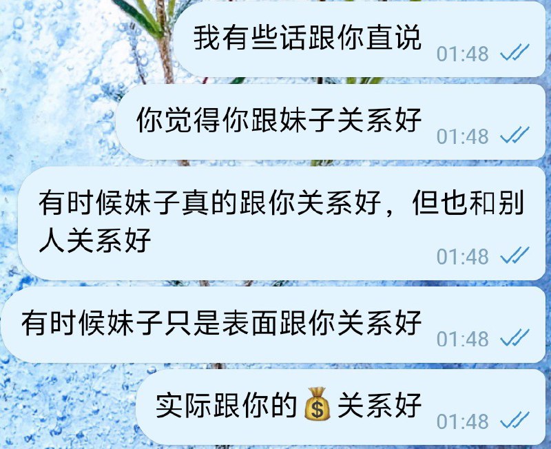 客人的心态上面提过了,就不多赘述。只在此提一点建议——真的不要做赛博舔狗了,线下舔妹子就算了,好歹算是一对一的舔,线上你要面对的可是数以百计的舔狗同行,雄竞压力大就不说了,还容易把妹子舔飘,得不偿失。当然,如果放平心态,就把妹子当成一个普通的群友进行互动,那确实也别有一番风味?